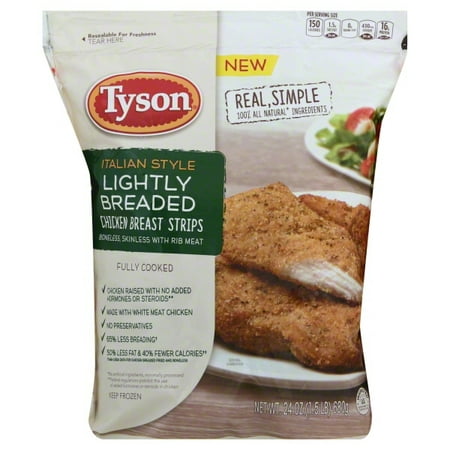 Tyson Naturals Breaded Chicken Breast Strips | Hy-Vee ... from fa74d61d848a20b729bb-0251b36b713060ab3e0e8321940e01ff.ssl.cf2.rackcdn.com Learn the good & bad for 250,000+ products. Made with chicken raised with no antibiotics ever, tyson naturals italian style lightly breaded chicken breast strips are a delicious addition to any meal. Our chicken patties are made with 100% all natural white meat chicken with no fillers or preservatives, then breaded and seasoned to perfection and make a great alternative to hamburger patties. (frozen) (5 lb) delivered to you within two hours via instacart. One 36 oz package of lightly breaded chicken breast strips. Dextrose, dried yeast, extractives of paprika, garlic powder, onion powder, salt, soybean oil, spices, sugar, torula yeast, wheat gluten, yellow corn flour. Get tyson uncooked panko breaded chicken breast tenderloins, 40 oz. 210 calories, nutrition grade (b minus), problematic ingredients, and more.
